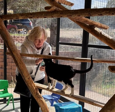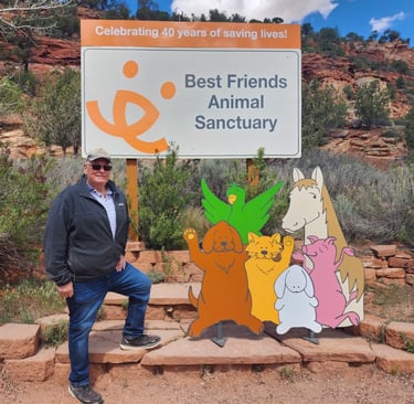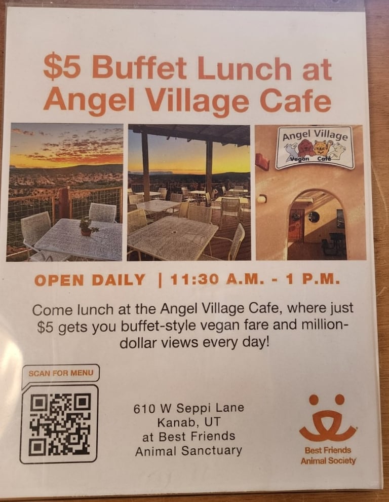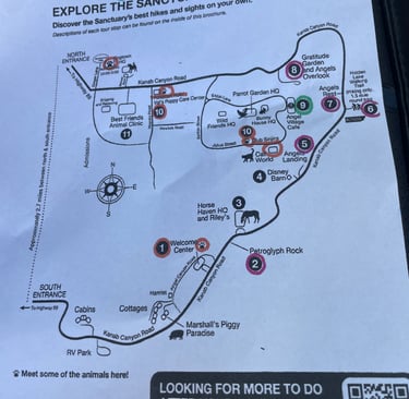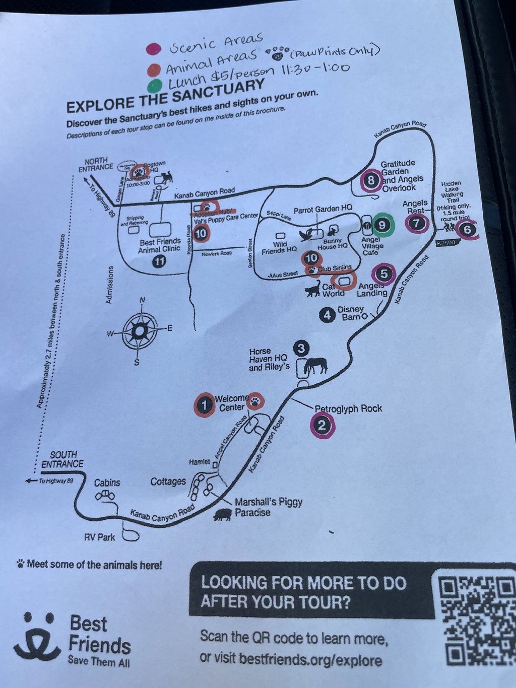 Kanab is a cute mid-sized town with spectacular canyon views, but it is also the home of Best Friends Animal Sanctuary. It is the largest such Sanctuary in the country, sitting on over 6000 acres of land, and is dedicated to finding forever homes for all kinds of animals. They have dogs and cats, of course, but also pigs, horses, goats, birds, and reptiles. They offer a free 90-minute tour of their compound to any interested persons, which we signed-up to do.