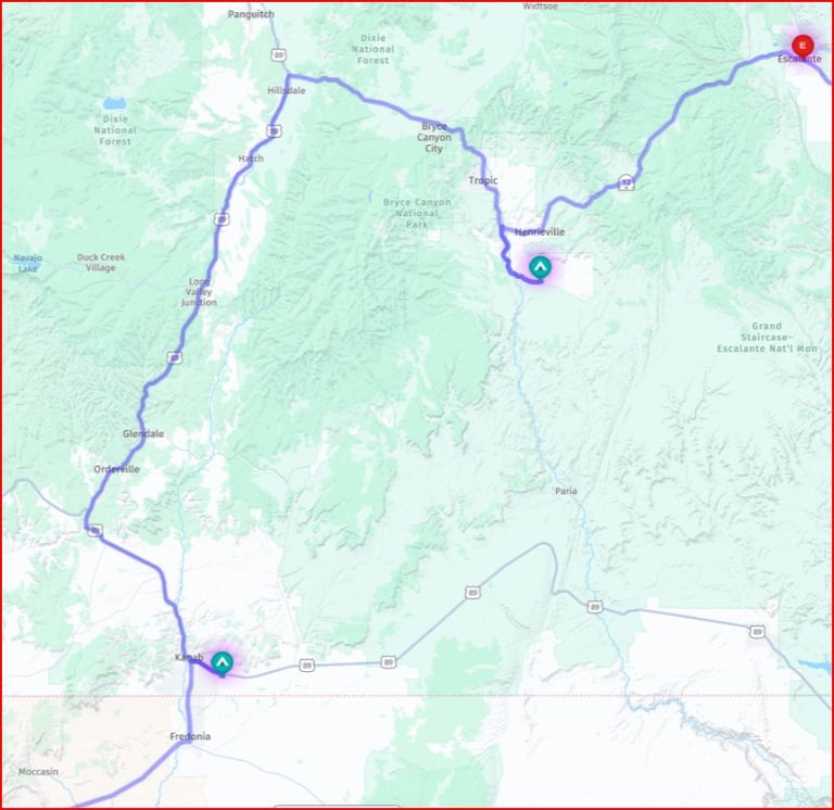 Our final destination in Utah is Kanab. Along the way we passed by Zion Canyon National Park. We'd been there before and decided not to detour to the park. But, the surrounding landscape hinted at the Zion geology.