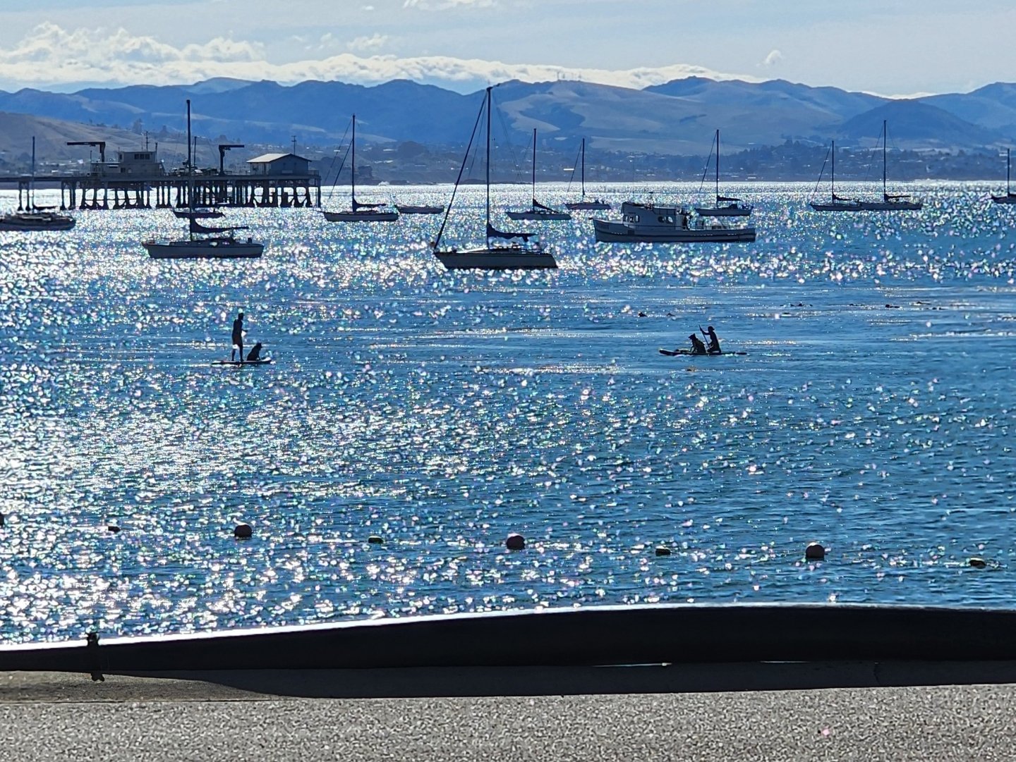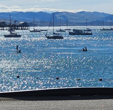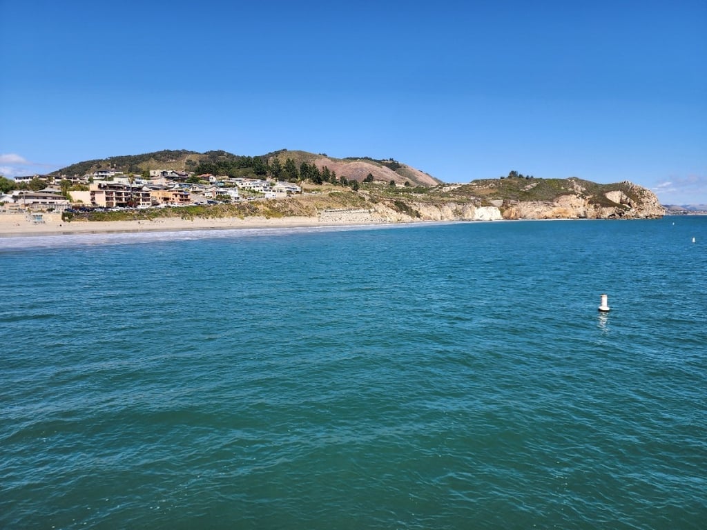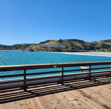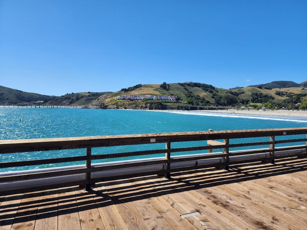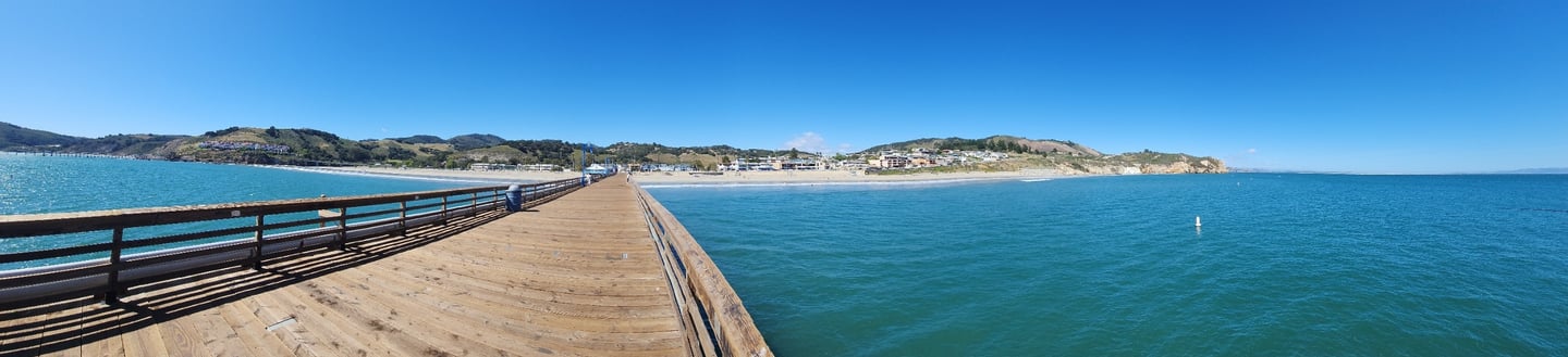 John rode his ebike into the quaint town of Avila Beach, They have a pier, which John rode out to the end. Looking back at the shore, John snapped these pics, and even tried a panorama view.