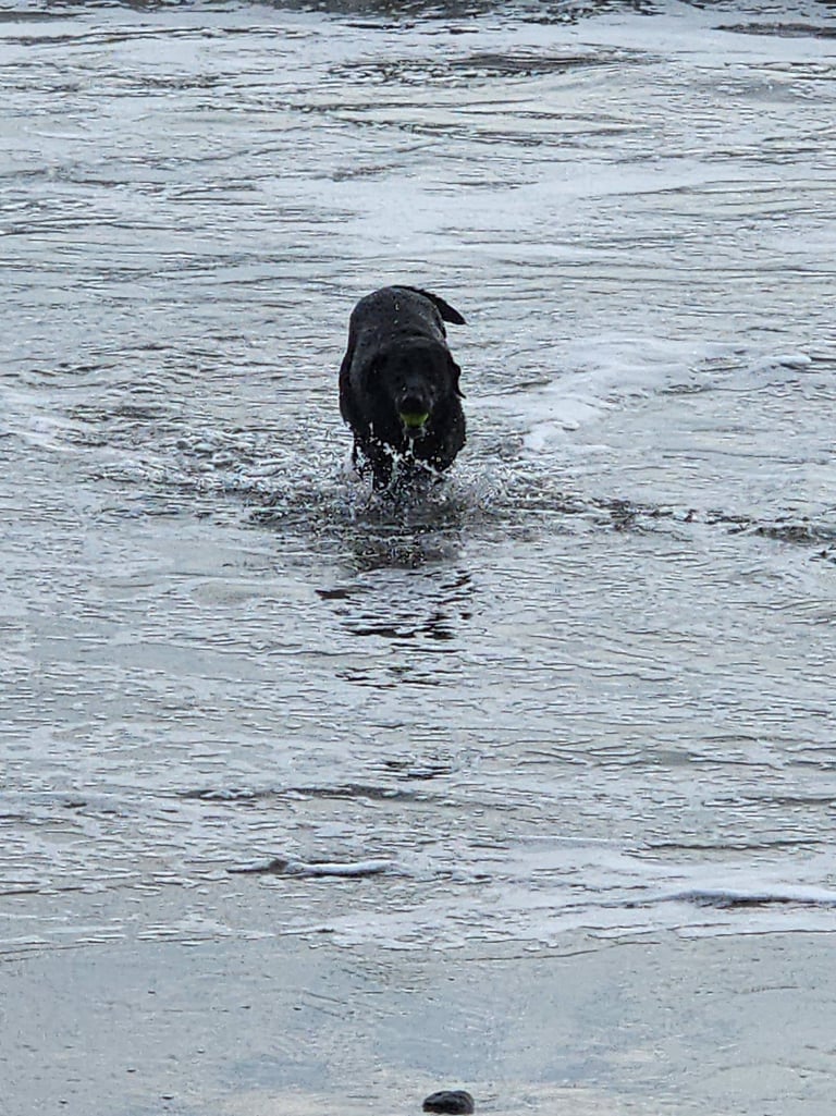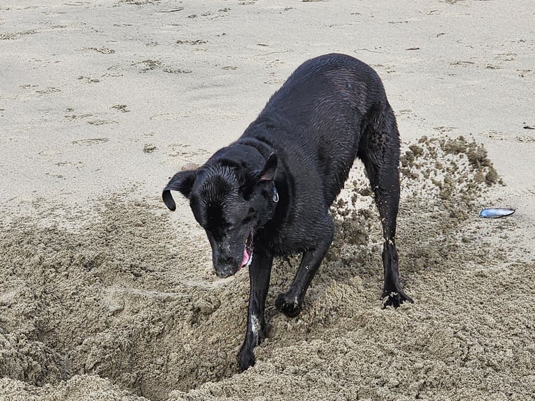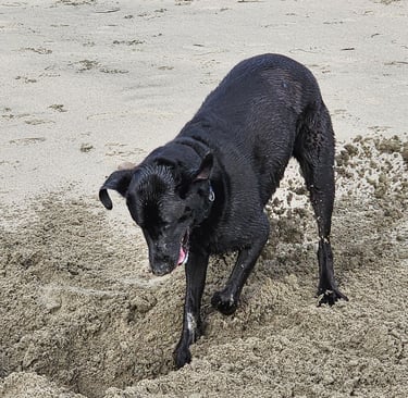 Next, Hobbs hit the dog beach for some serious swimming and digging.