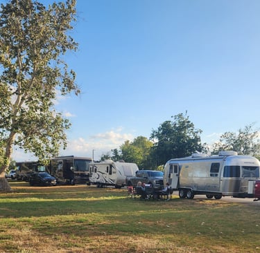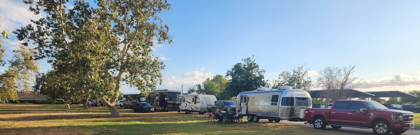 Our first night was at the Riverlakes Golf Course in Bakersfield, which is a participant in Harvest Hosts. We've stayed here before and always enjoy the serenity and beauty, especially after the last of the golfers depart, leaving just us Harvest Host campers. You can see Allan & Patricia's Airstream parked ahead of our rig, along with 4 other rigs enjoying the Golf Course's hospitality.