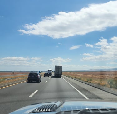 I-5 is the major Interstate Hwy that completely bisects California from North to South. As a result, it is packed with lots of semi-rigs transporting all sorts of goods. It is often congested and wrestling your truck and and your trailer amongst the big rigs can be very unsettling. But it is the quickest and most direct way to exit the State.