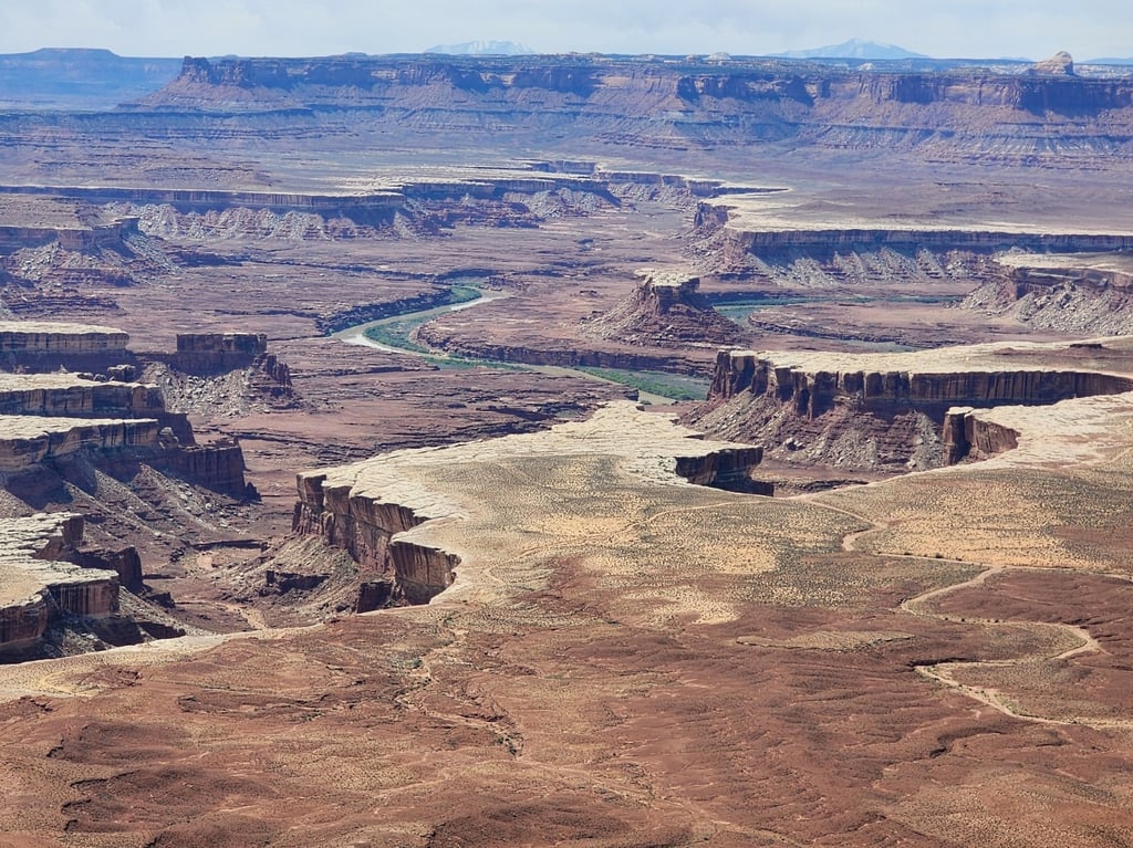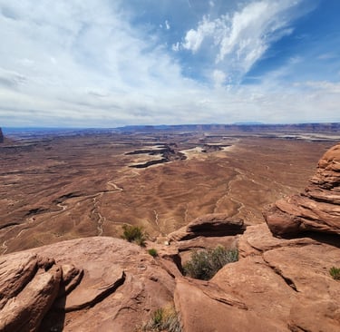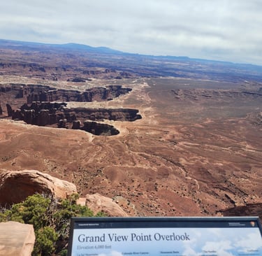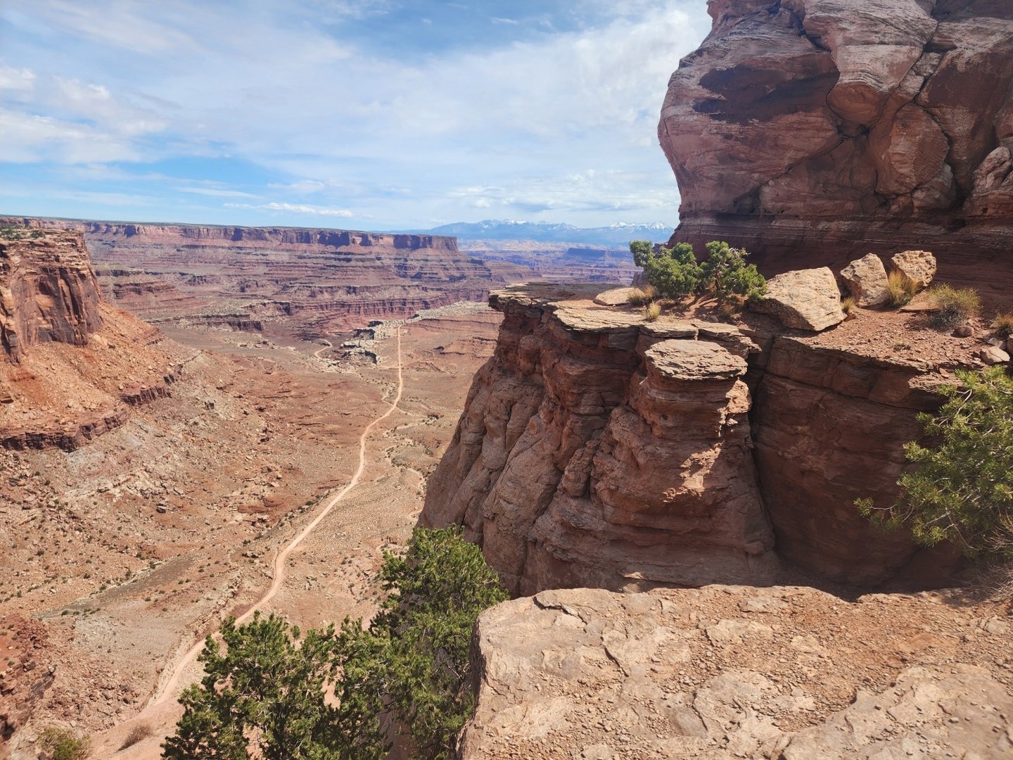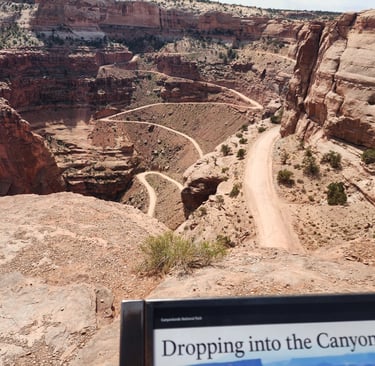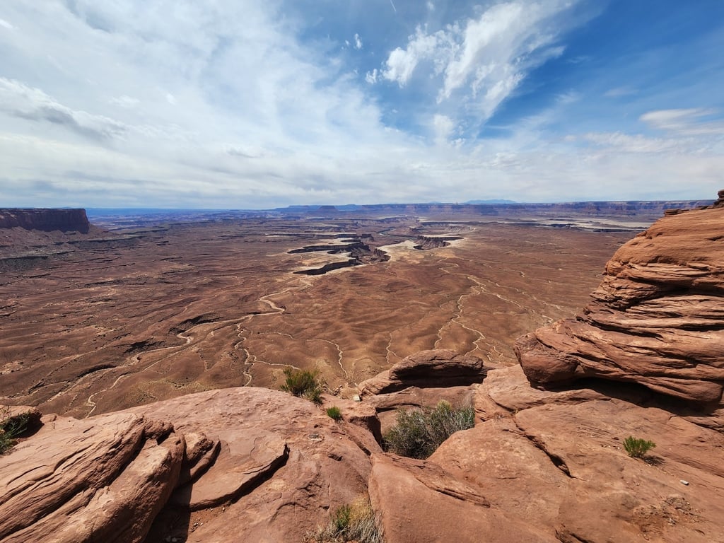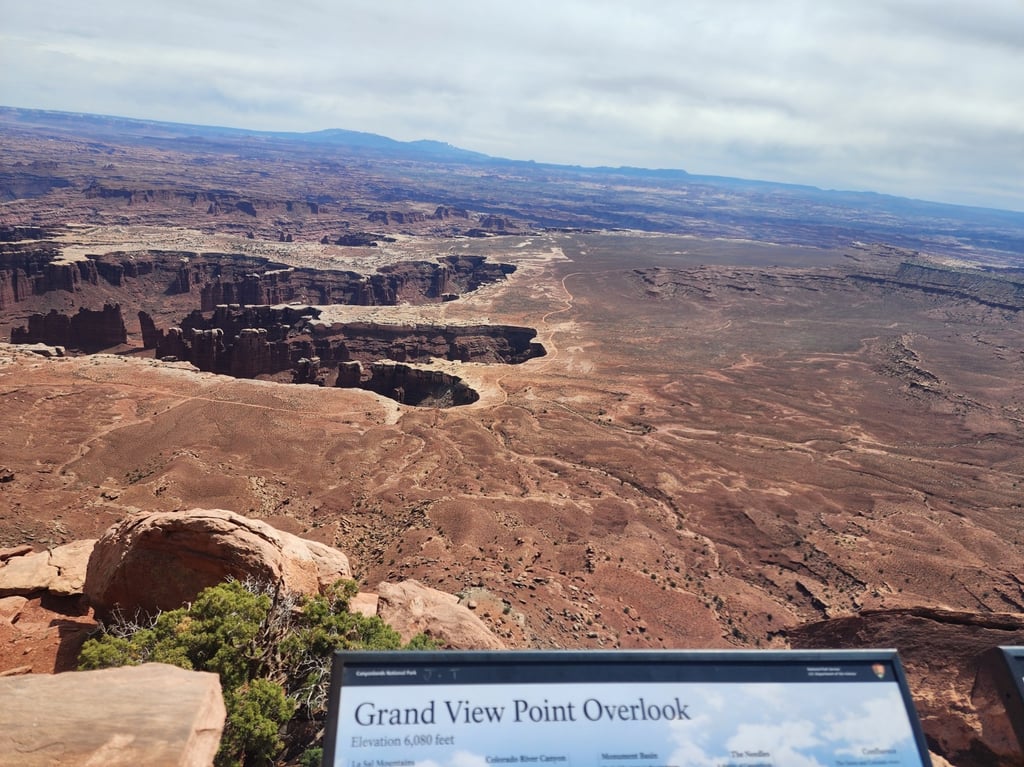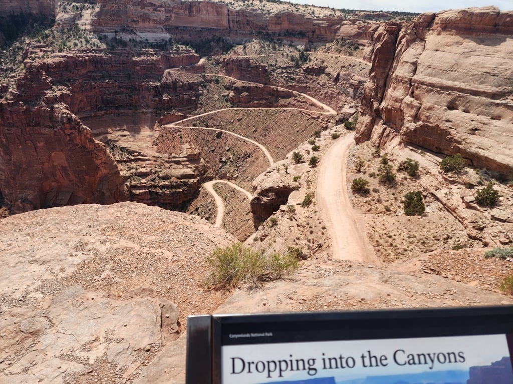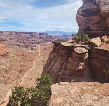 Moab is a great central location to visit Canyonlands and Arches National Parks. The next day we hit Canyonlands and drove to the end of the road at the Grand View Point Overlook. There are popular dirt roads that people can take, two of which are Shafer Trail and White Rim trail. In the pictures that follow, you can often see one of these trails in the picture.