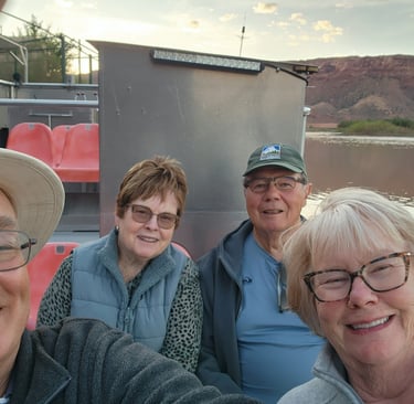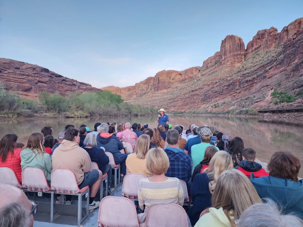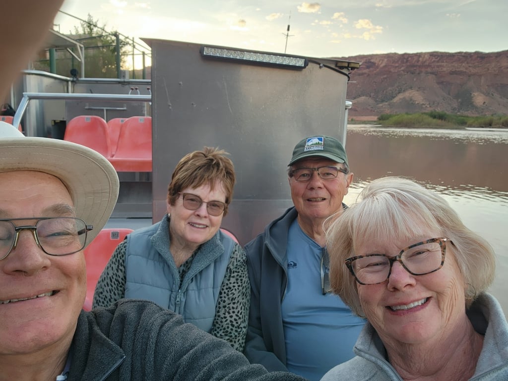 That evening we signed up for a Colorado River Canyon Cruise and Dinner. The operation is family owned and run, and they work very hard to put on an enjoyable experience. The cruise heads out after a chuck-wagon style dinner is served on shore. The cruise is timed so that we depart at twilight and return when it is quite dark. This allows for some great stargazing, but they also have a spotlight truck that follows along and illuminates the canyon walls with a high-powered lighting system. It is all synchronized with music and songs and informative dialogue. It was not highly educational but was a pleasant way to see the river and the canyon.