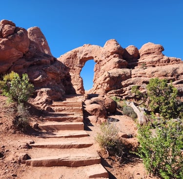 There are over 2000 arches documented in the park. This one called Delicate Arch has come to symbolize the park and is often shown on their literature. Other notable arches include Windows Arch and Turret Arch.