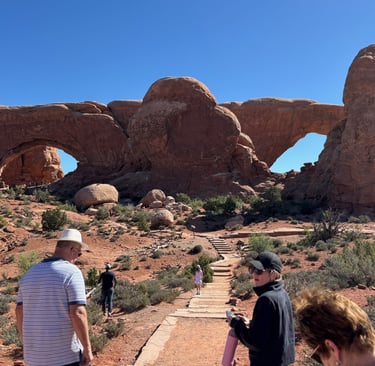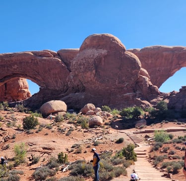 The next day we hit Arches Nat'l Park. This park is very popular this time of year with wait lines at the entrance kiosk often exceeding an hour mid-day. We decided to make it an early day and arrived at the kiosk at 7:30 am. There was still a 10 minute wait! But it was all for the best as the morning light illuminated the many arches beautifully.